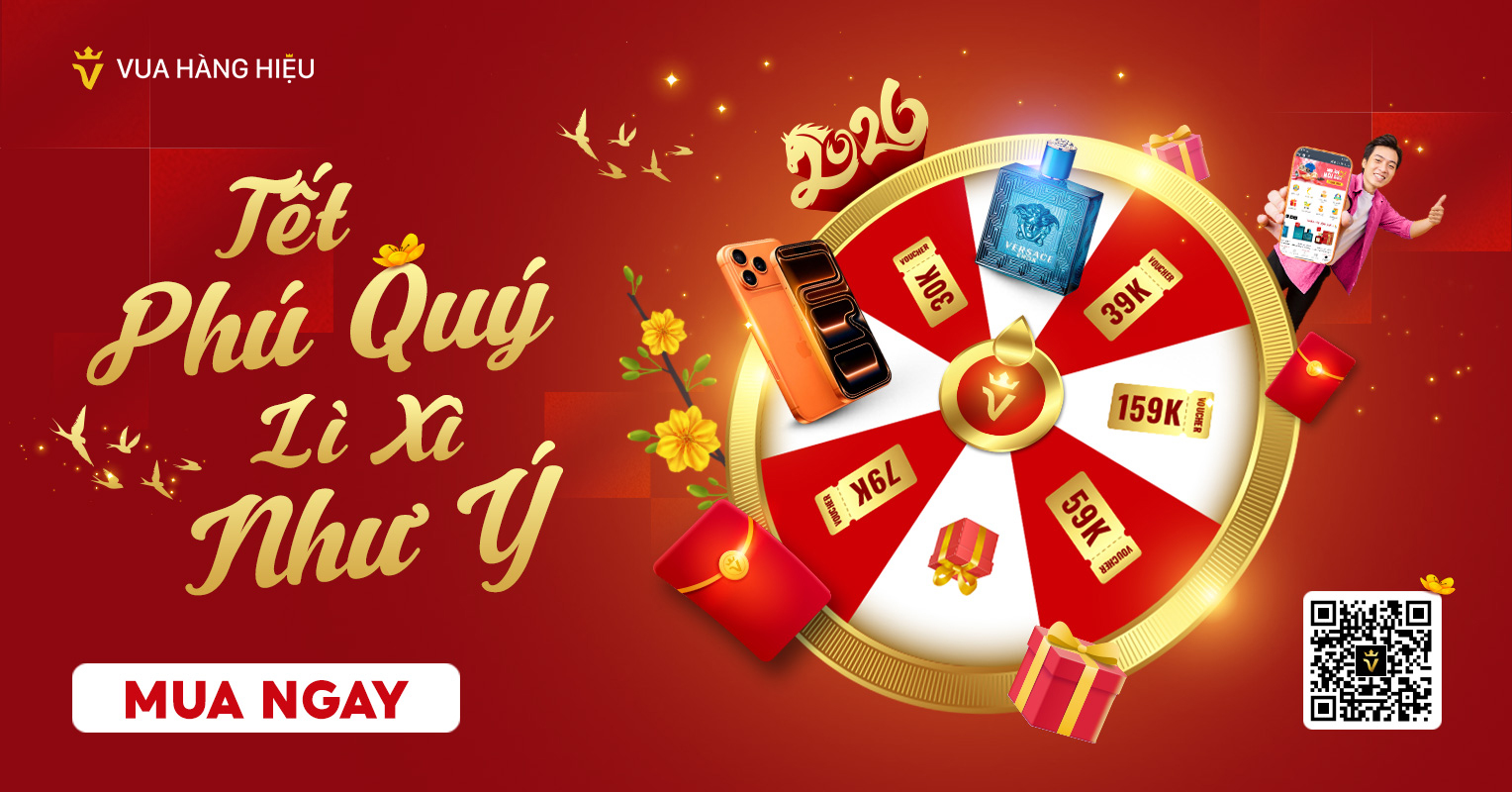 Tết Nguyên Đán không chỉ là thời điểm sum vầy mà còn là dịp khởi đầu một năm mới với nhiều may mắn và tài lộc. Nhân dịp Tết Âm lịch 2026, Vua Hàng Hiệu triển khai chương trình Vòng Quay May Mắn – Tết Phú Quý, Lì Xì Như Ý, mang đến cho khách hàng cơ hội nhận hàng loạt ưu đãi giá trị và quà tặng hấp dẫn chỉ với một lần quay duy nhất.